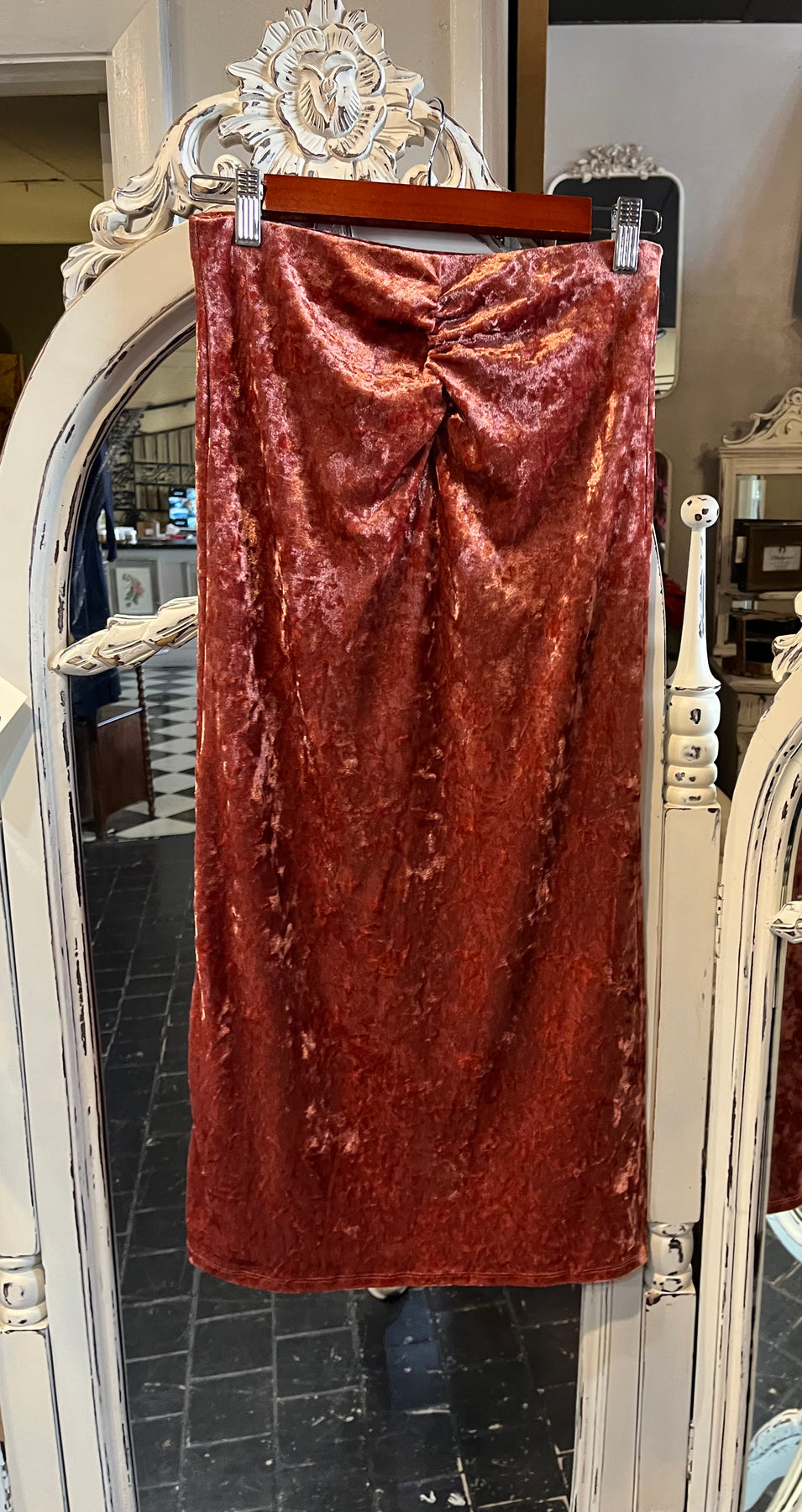 Velvet Midi Length Skirt